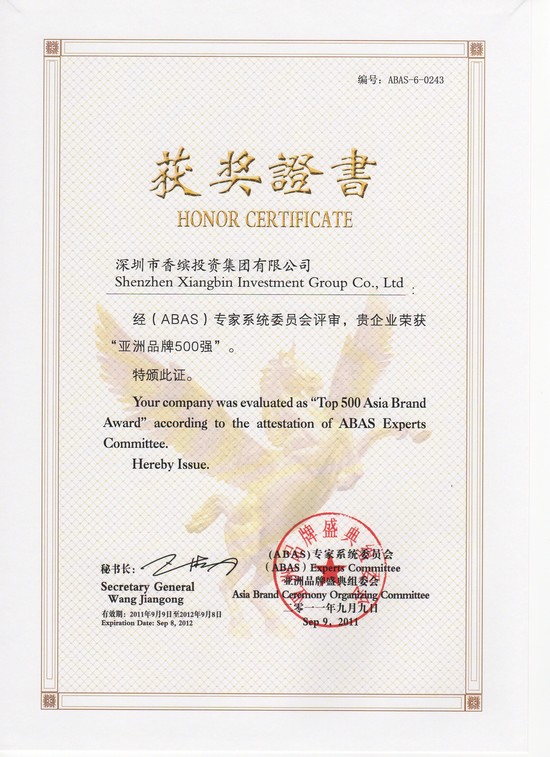 亞洲品牌500強(qiáng)企業(yè)稱號(hào)