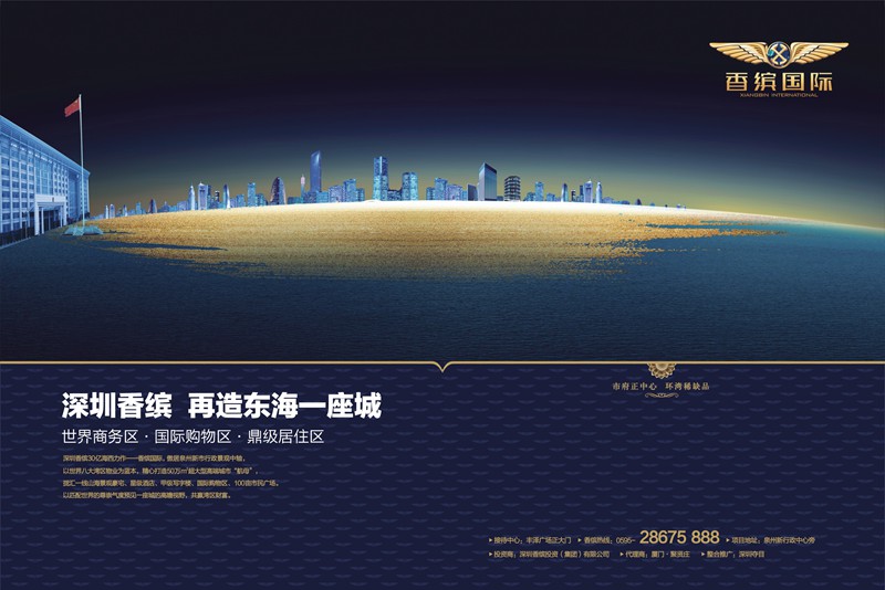 香繽國際位于市府核心區(qū)的核心。與新市政府僅一路之隔,背山面海,地理位置優(yōu)越,交通發(fā)達。作為香繽集團海西建設的第一個標桿項目,香繽集團斥資30億,與市政府共同打造市府環(huán)灣經(jīng)濟圈。項目建筑面積達50萬M2。建成后,形成集星級酒店、甲級寫字樓、一線山海住宅、繽紛商業(yè)及相關配套的城市綜合體。其中商業(yè)項目擁百畝市民廣場并獨享5萬平方米的下沉式商業(yè)廣場,與700畝濱海公園全線相連。是難得一見的項目。“市府正