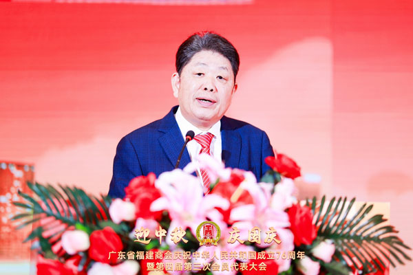 廣東省工商聯黨組成員、專職副主席馮日光在會上講話。他肯定了廣東省福建商會成立以來的成績。廣東省福建商會成立以來,始終秉承“團結、拼搏、開拓、奉獻”的辦會宗旨,積極匯聚各級在粵閩商社團和廣大在粵閩商力量,與時代同頻、與南粵共進,以黨建為引領凝聚共識,以服務為宗旨賦能會員,以創新為動力融入大局,以擔當為底色回饋社會,在促進閩粵兩地經濟社會交流交往交融中展現了“閩商擔當”、貢獻了“閩商智慧”。