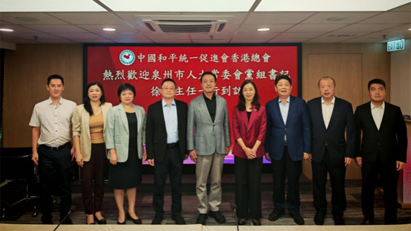 中國(guó)和平統(tǒng)一促進(jìn)會(huì)香港總會(huì)今日(10月10日)接待泉州市人大常委會(huì)黨組書記、主任徐華一行並座談交流,探討深化泉港交流合作,共同推進(jìn)兩岸融合發(fā)展示範(fàn)區(qū)建設(shè)。全國(guó)政協(xié)常委、中國(guó)和平統(tǒng)一促進(jìn)會(huì)香港總會(huì)會(huì)長(zhǎng)姚志勝攜全國(guó)政協(xié)委員、香港統(tǒng)促總會(huì)執(zhí)行會(huì)長(zhǎng)許明金熱情歡迎泉州家鄉(xiāng)客人。